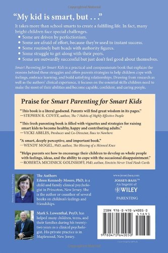Smart Parenting for Smart Kids: Nurturing Your Child′s True Potential Eileen Kennedy-Moore pdf español - Smart Parenting for Smart Kids: Nurturing Your Child's True PotentialRang parmi les ventes Amazon: #138980 dans LivresMarque: Brand: JosseyBassPublié le: 2011-03-11Langue d'origine: AnglaisNombre d'articles: 1Dimensions: 8.90" h x .86" l x 5.80" L, .83 livres Reliure: Broché320 pagesRevue de presseThis book is a literal Godsend. Parents will find great wisdom in its pages. Stephen R. Covey, author, The 7 Habits of Highly Effective People A smart, deeply perceptive and important book. Wendy Mogel, PhD, author, The Blessing of a Skinned Knee "This book helps parents see how to encourage their children to develop as whole people with feelings, ideas, and the ability to cope with the occasional disappointment too."Roberta Michnick Golinkoff, PhD, author of Einstein Never Used Flash Cards Filled with vignettes and strategies for raising smart kids to become healthy, happy and contributing adults. Vicki Abeles, Producer, Race to Nowhere A wise and witty book . (Junior, December 2012)Présentation de l'éditeurWINNER! Mom′s Choice Gold Award for parenting books –– Mom′s Choice Awards: The best in family–friendly media"My kid is smart, but..."It takes more than school smarts to create a fulfilling life. In fact, many bright children face special challenges:Some are driven by perfectionism;Some are afraid of effort, because they′re used to instant success;Some routinely butt heads with authority figures;Some struggle to get along with their peers;Some are outwardly successful but just don′t feel good about themselves.This practical and compassionate book explains the reasons behind these struggles and offers parents do–able strategies to help children cope with feelings, embrace learning, and build satisfying relationships. Drawing from research as well as the authors’ clinical experience, it focuses on the essential skills children need to make the most of their abilities and become capable, confident, and caring people.Quatrième de couverture"My kid is smart, but . . ." It takes more than school smarts to create a fulfilling life. In fact, many bright children face special challenges. Some are driven by perfectionism. Some are afraid of effort, because they′re used to instant success. Some routinely butt heads with authority figures. Some struggle to get along with their peers. Some are outwardly successful but just don′t feel good about themselves. Smart Parenting for Smart Kids is a practical and compassionate book that explains the reasons behind these struggles and offers parents strategies to help children cope with feelings, embrace learning, and build satisfying relationships. Drawing from research as well as the authors′ clinical experience, it focuses on the essential skills children need to make the most of their abilities and become capable, confident, and caring people. Praise for Smart Parenting for Smart Kids "This book is a literal godsend. Parents will find great wisdom in its pages."Stephen R. Covey, author, The 7 Habits of Highly Effective People "This fresh parenting book is filled with vignettes and strategies for raising smart kids to become healthy, happy and contributing adults."Vicki Abeles, Producer and Co–Director, Race to Nowhere "A smart, deeply perceptive, and important book."Wendy Mogel, PhD, author, The Blessing of a Skinned Knee "Helps parents see how to encourage their children to develop as whole people with feelings, ideas, and the ability to cope with the occasional disappointment."Roberta Michnick Golinkoff, PhD, author, Einstein Never Used Flash Cards